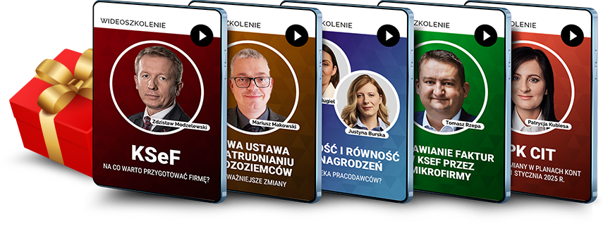 Zobacz najnowsze wideoszkolenia dla specjalistów ds. kadr i księgowości i poznaj już obowiązujące oraz planowane zmiany w przepisach! W zaledwie jedną godzinę uzyskasz praktyczną wiedzę i wskazówki eksperta – do obejrzenia w dogodnym dla Ciebie czasie, od razu po uzyskaniu dostępu.